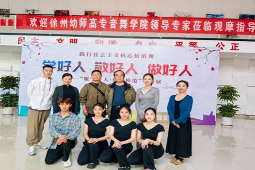 5月11日,太阳成集团tyc539舞蹈教研室吕碧、杨秀敏、姜黎黎、梁彬彬四位教师带领23级舞蹈表演班四位员工,前往徐州市睢宁县文化馆学习省级非遗舞蹈——睢宁落子舞。