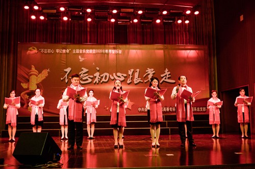 音乐舞蹈系党政负责人、总支及支部委员共同朗诵的诗歌《不忘初心跟党走》拉开了党课的序幕。此次音乐党课分为峥嵘岁月、屹立东方、春回大地、走向复兴等四个篇章。舞蹈《那年,剪短发》《活着,1937》、歌曲《我的爱人你可听见》《松花江上》带大家走进了战火纷飞的峥嵘岁月;歌曲《英雄赞歌》《我的祖国妈妈》《共和国之恋》表达了对英雄的致敬和对祖国深深的爱恋;一首《在希望的田野上》让大家如沐春风,感受到了改革开放后祖国欣欣向荣的繁荣景象,《亲吻祖国》《为祖国干杯》唱出了人民对祖国的深情眷恋和美好祝愿;《共筑中国梦》唱响了中华民族的伟大复兴梦,带大家走进了辉煌的新时代。《永远跟你走》《不忘初心》将音乐党课推向了高潮,全体演职人员用歌声表达了不忘初心、永远跟党走的信念和决心。