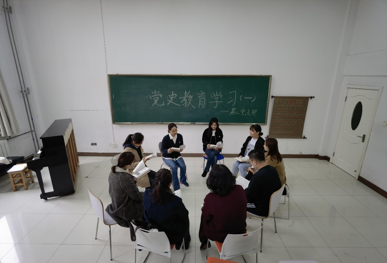 4月13日中午12:00,音舞系党总支第二党支部在艺术楼三楼合唱教室集中进行党史教育专题学习。此次学习活动由第二党支部刘纪秋书记领学,学习内容为《中国共产党简史》第一章“中国共产党的创建和投身大革命的洪流”。