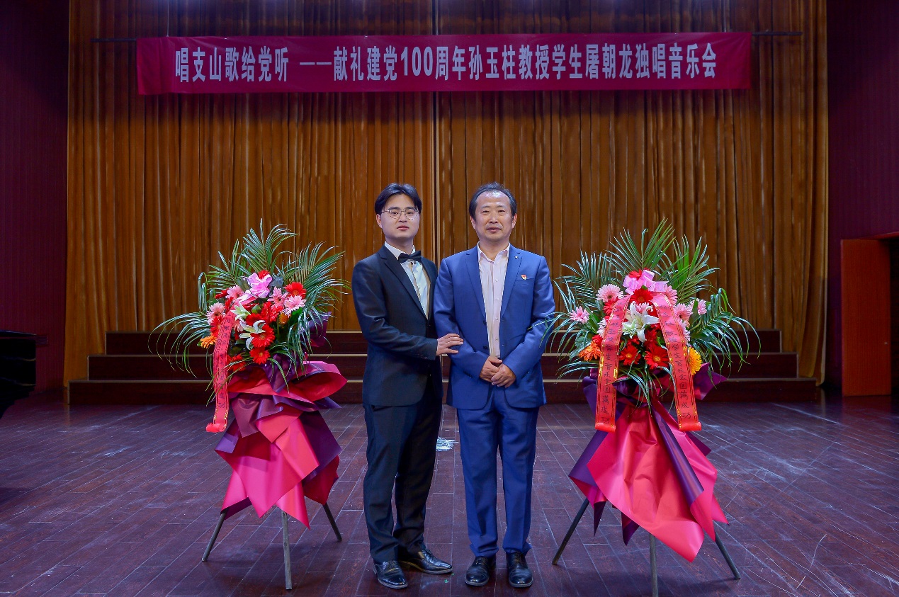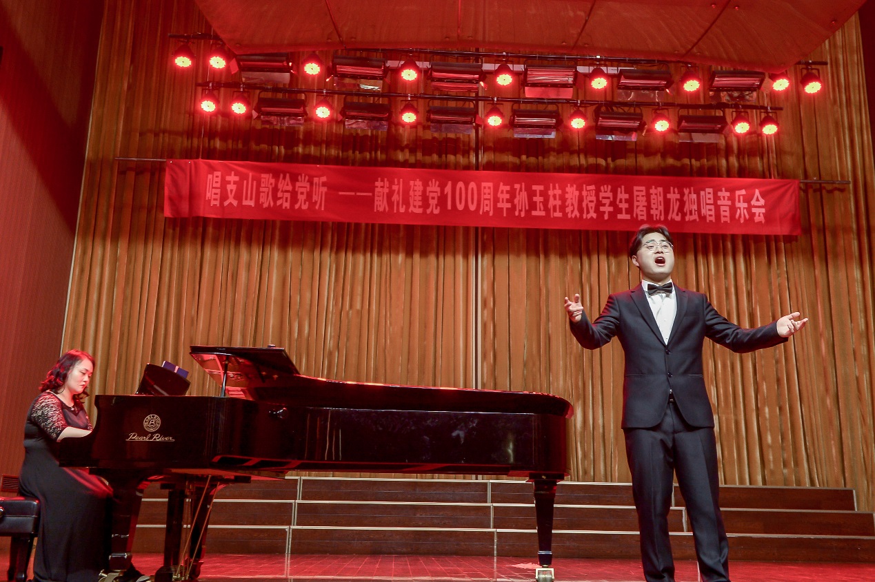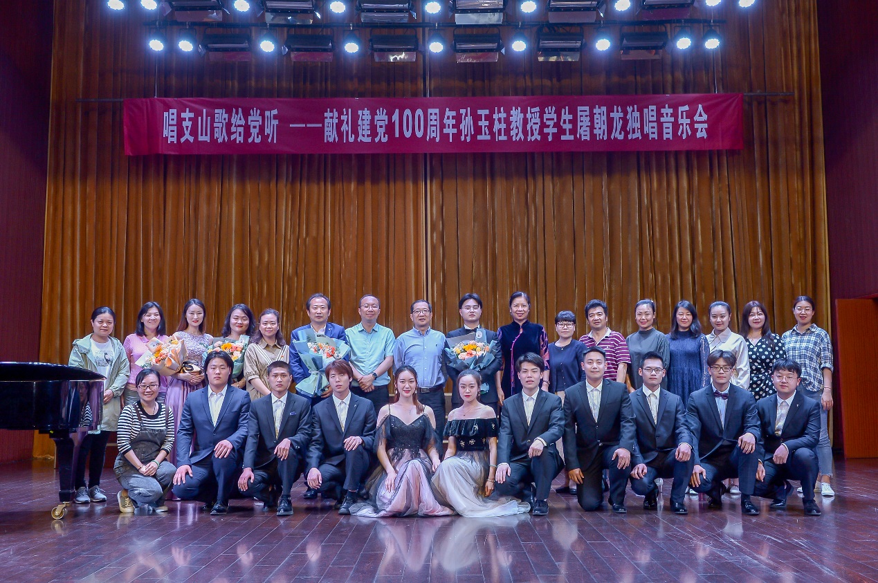 5月26日下午,太阳成集团tyc539碧螺校区音乐厅内余音绕梁,红歌嘹亮,这里正在举行“唱支山歌给党听——孙玉柱教授员工屠朝龙独唱音乐会”,公司党委书记王晓三,党委委员、副董事长曹利群,邓宪亮,纪委书记王启高、副董事长刘芳铭、宣传统战部部长孙力以及各处室、院系的领导和老师莅临现场,音乐舞蹈系全系师生参加了此次活动。