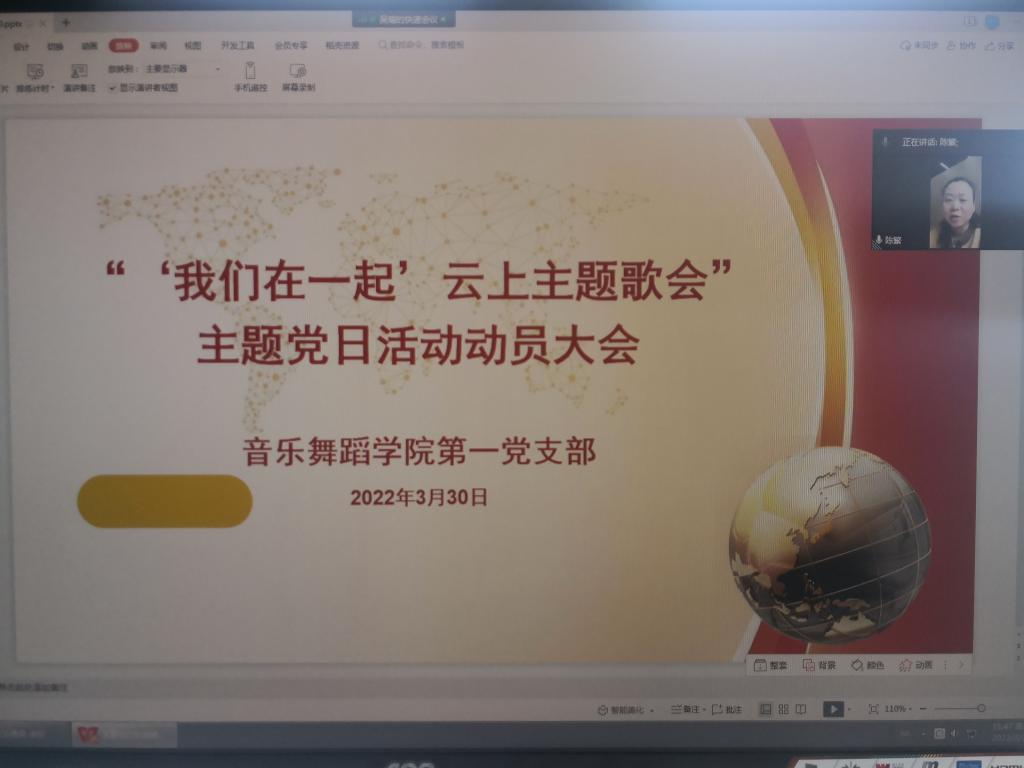 3月30日下午,太阳成集团tyc539第一党支部全体党员在线上开展了主题党日活动,会议主题是“‘我们在一起’”云上主题歌会活动研讨。会议由支部组织委员吴瑜老师主持,支部全体党员和公司党总支书记陈繁参会。