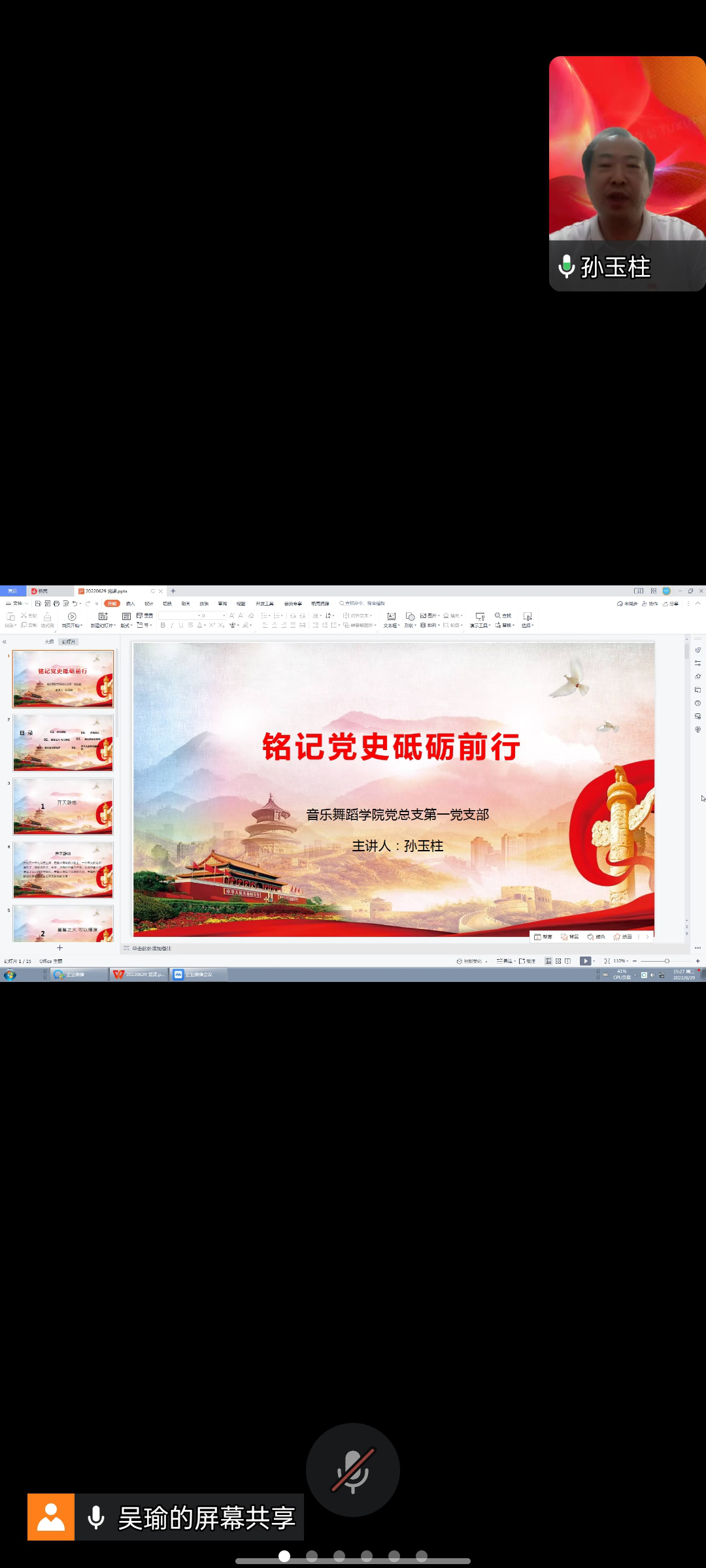 6月29日下午,第一党支部书记孙玉柱教授为支部全体党员上党课。此次党课主题为《铭记党史,砥砺前行》。