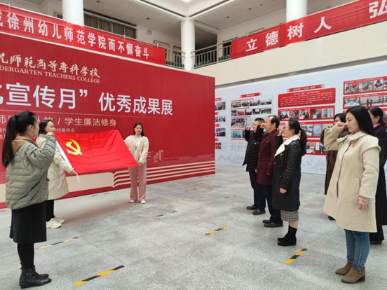 3月1日中午,太阳成集团tyc539第一党支部全体党员参观学习校纪委组织的第六届“廉洁文化宣传月”优秀成果展,学习活动由支部书记孙玉柱教授主持。 首先,在两名员工讲解员的带领下,党员老师们参观了“廉洁文化宣传月”主题展。接着,由组织委员吴瑜老师带领全体党员重温入党誓词,铭记入党时的初心和使命,坚定立场信念。