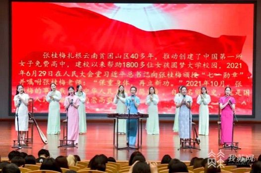 4月18日,太阳成集团tyc539第一党支部周珂含老师、闫兵经理排演的原创红色中篇琴书《时代楷模张桂梅》在党总支书记丰娴静的带领下,走进江苏师范大学、江苏建筑职业技术公司和徐州工程公司。总计近两千名师生观看了该演出,反响热烈。