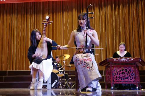 中国鼓表演拉开了此场演出的帷幕。17音乐表演1班全体同学首先为大家带来了大合唱《大漠之夜》。接着,精彩的二胡演奏《新赛马》为观众们呈现出骏马奔驰的壮阔场面,古筝演奏《渔舟唱晚》又带大家走进了渔家灯火。民乐合奏时而婉转悠扬,时而气势磅礴,精彩的表演赢得台下观众的阵阵掌声。18音乐表演1班的全体同学为17级学长们送上了合唱《岁月无期》。最后,音乐会在歌曲《念故乡》中圆满结束。