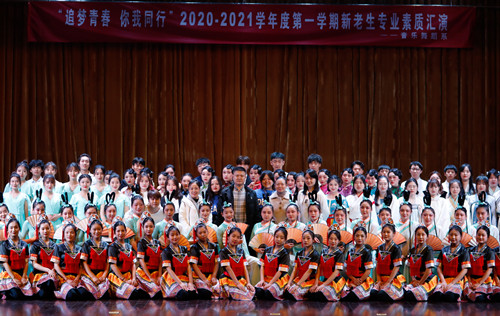 干脆帅气的拉丁舞串烧,绕梁遏云的流行曲串烧令人印象深刻;清澈澄净的民乐合奏带领大家进入了一个空灵的世界;19级音乐教育2班表演的《金陵十三钗》则将大家带入了那个战火纷飞的峥嵘岁月。精彩纷呈的舞蹈,婉转抒情的音乐,动感的爵士,赢得了现场观众阵阵喝彩。18级音乐教育班王东升同学的一曲《连名带姓》更将现场的氛围推向了高潮,演出在20级舞蹈表演班的舞蹈《醉清风》中缓缓落下帷幕,欢愉和谐的气氛萦绕在音乐厅上空,在音乐和舞蹈中,同学们之间的距离也不知不觉地拉近了,新生们对各自的专业目标和技能有了初步的认识,对未来三年的老员工活充满了信心和憧憬。