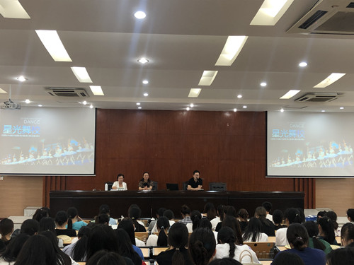 5月24日下午,我系邀请星光舞校薛黔星董事长及优秀员工来校宣讲,会议由系党总支书记陈繁主持,我系19级、20级舞蹈表演专业和学前与特殊教育公司17级、18级学前教育舞蹈方向班的同学参加了会议。