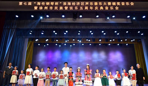 5月18日下午,由徐州市文广新局、徐州工程公司艺术公司、都市晨报、徐州教育在线主办,徐州市民族管弦乐学会等单位承办,中国·海伦钢琴股份有限公司等单位协办的第七届“海伦钢琴杯”淮海经济区声乐器乐大赛颁奖音乐会暨徐州市民族管弦乐学会五周年庆典音乐会演出在徐州工程公司中心校区老员工活动中心剧场圆满闭幕。