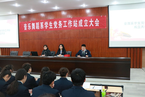 为推进党的基层组织建设和工作方式方法创新,完善员工积极分子的队伍选拔和培养机制,2019年3月20日中午,在碧螺校区学术报告厅召开徐州幼专音舞系员工党务工作站成立大会。参加此次会议的有我系党支部副书记吴雪梅;党员老师代表高蕾、张瑶、曹莹;员工党务工作站全体成员以及音舞系全体员工干部。会议由高蕾老师主持。