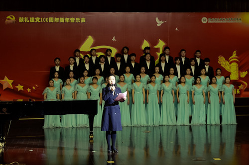 音乐会开始,音乐舞蹈系党支部陈繁书记代表全系师生致欢迎词。陈书记首先对领导、老师和同学们的光临表示热烈欢迎,对一年来大家对音乐舞蹈系工作的关心与支持表示衷心感谢。陈书记讲到,2021年将迎来中国共产党建党100周年,在这个辞旧迎新的日子,音舞系师生将引吭高歌、倾情演绎,送故岁、迎新年,为党的百岁生日献礼。