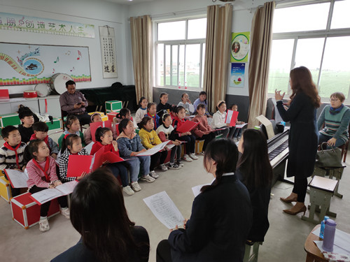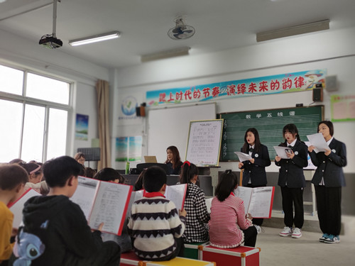 通过一个小时左右的学习,小朋友们熟悉了旋律,能跟着老师和志愿者们自信、大声地演唱,声乐教室内飘荡着优美的旋律和欢快的歌声。美好的时光都是短暂的,下午五点左右,在小朋友们的依依不舍中,师生们乘车离开了校园。
