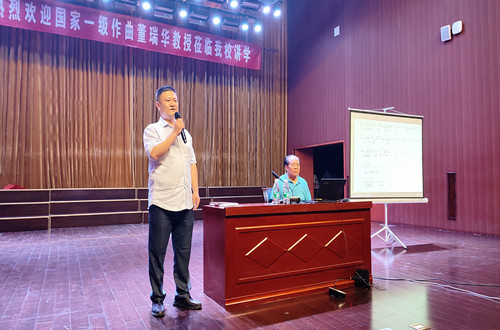 5月17日,由公司太阳成集团tyc539、儿童数字音乐中心主办,徐州市音协音乐创作专业委员会协办的《浅谈戏歌与合唱的写作》专题讲座在公司音乐厅举行,本次讲座邀请了国家一级作曲董瑞华教授授课,徐州市音协副主席、市音协音乐创作专业委员会主任、公司儿童数字音乐中心负责人高志副教授主持,太阳成集团tyc539副经理闫兵出席了本次活动,公司师生以及市音协部分会员参加。
