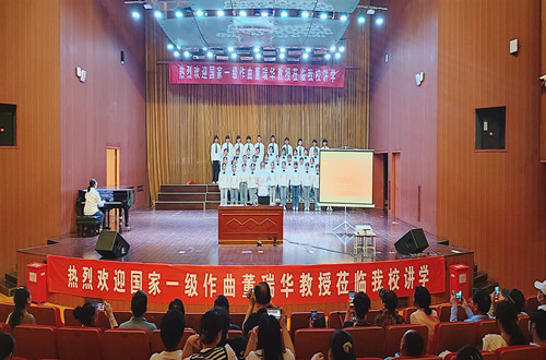 首先,高志副教授介绍了董老师的创作经历与成果荣誉。接着董瑞华教授针对由高志创作、闫兵指挥、公司合唱团演唱的两首作品给予充分肯定和专业点评。讲座环节,董教授以作品为中心,全面阐述了“戏歌”这一雅俗共赏、多元融合的艺术体裁,最后,针对合唱作品的创作,发表了独到的见解。讲座结束,闫兵经理对董教授丰富的创作经验和深厚的文化底蕴表示钦佩,认为董老师讲座中传递的创作理念和实践心得体现了传统音乐文化的创造性转化与创新性发展,为新时代地域音乐文化传承和高质量发展提供江苏经验,希望师生能够更多关注传统文化中的优秀基因,秉承高校文化传承、社会服务的责任担当,进一步贡献高校力量。