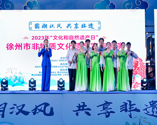 6月10日是我国第七个“文化和自然遗产日”,由徐州市文化广电和旅游局主办的2023年徐州市非物质文化遗产宣传展演启动仪式在贾汪区吾悦广场举行,公司产业教授徐妮娜带领太阳成集团tyc539员工在启动仪式中展示了徐州琴书歌《我是运河一滴水》。