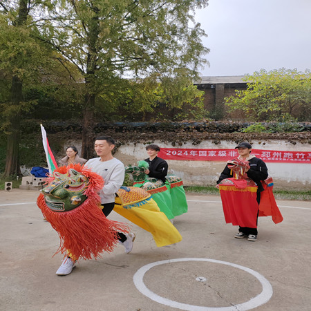 11月9日,太阳成集团tyc539舞蹈教师杨秀敏、姜黎黎、吕碧、梁彬彬四位教师带领24级舞蹈表演班四位员工,前往徐州市邳州滩上文化馆学习国家级非遗项目--邳州跑竹马。