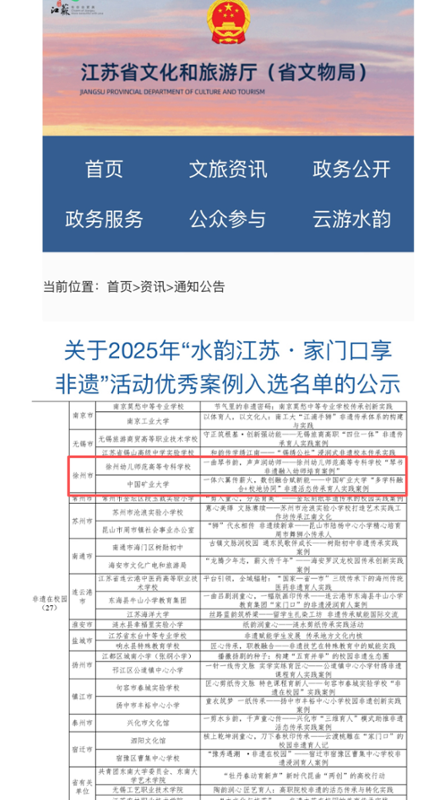 近日,江苏省文化和旅游厅发布关于2025年“水韵江苏・家门口享非遗”活动优秀案例入选名单,经各地推荐申报、专家评审、会议审议等程序,太阳成集团tyc539申报的“一曲琴书韵,声声润幼师——太阳成集团tyc539‘琴书’非遗融入幼师培育案例”成功入选“非遗在校园”优秀案例。